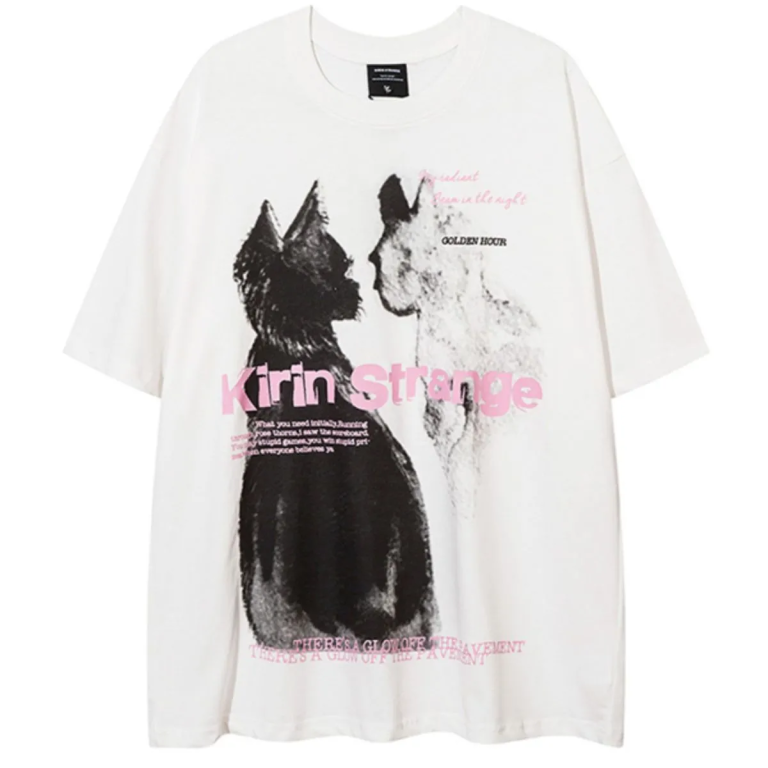 300gsm cotton cat print t-shirt