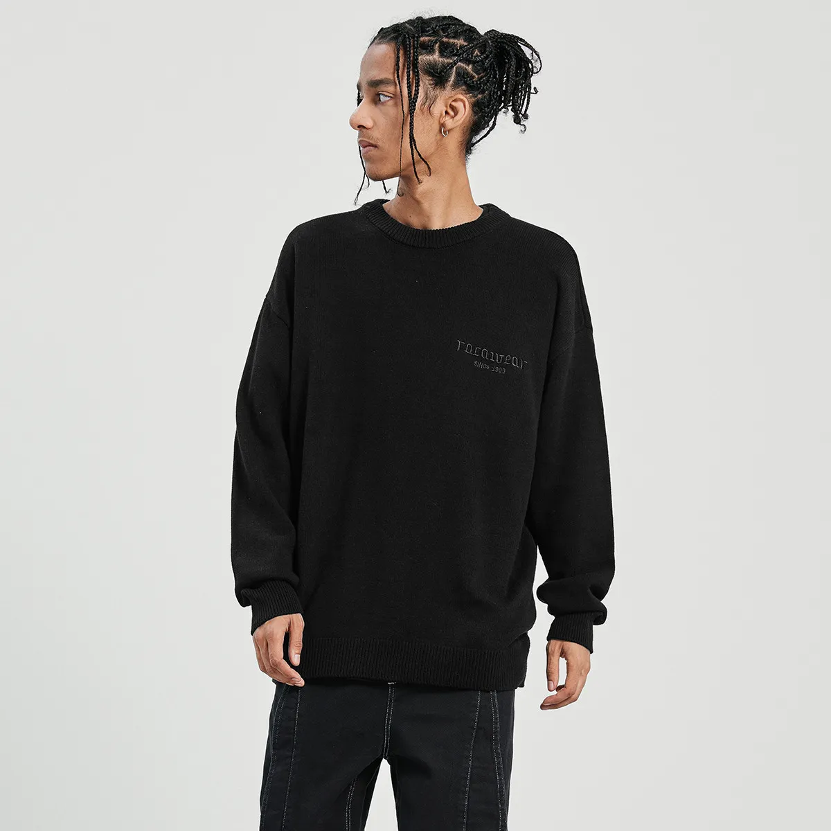 Be the first to review “American streetwear letter and paisley patch loose knit sweater”